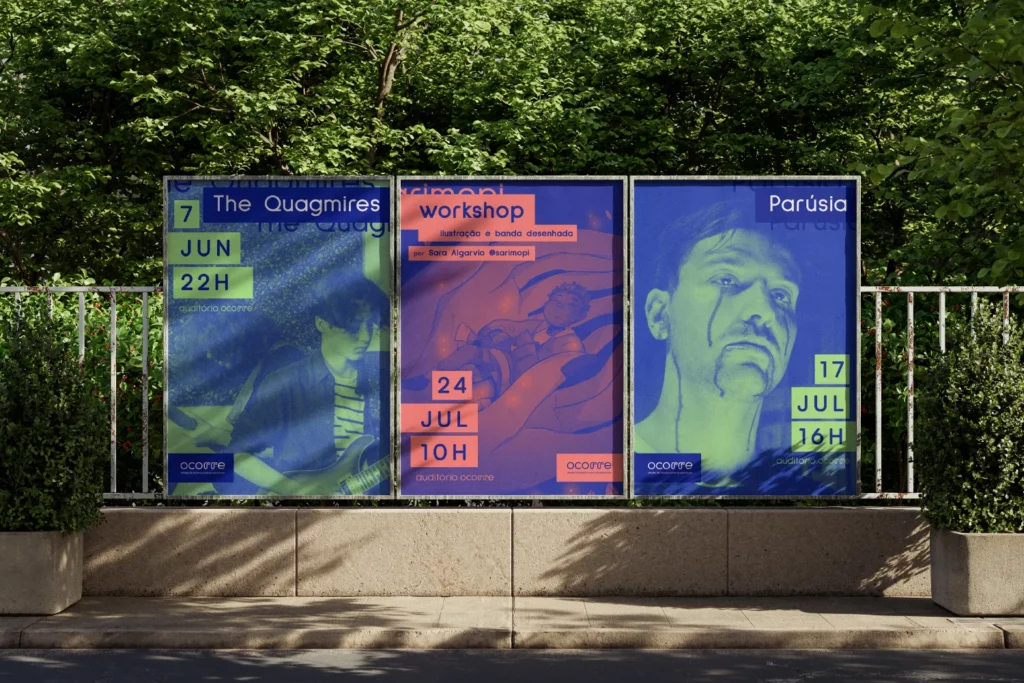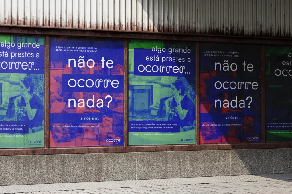 ocorre needs a strong and versatile visual identity, which represents its most crucial aspect: supporting the arts and artists, based on cooperativism.
